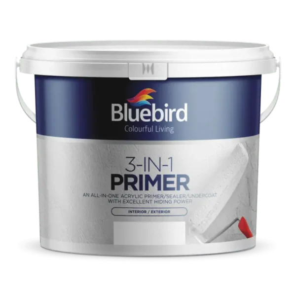 Bluebird 3-in-1 Primer is an all round primer recommended for both interior and exterior use. It has attributes of a Primer, Sealer and Undercoat. It has been specially formulated with improved and enhanced benefits for maximum penetration and adhesion. Used as Undercoat for Water-based Emulsions.