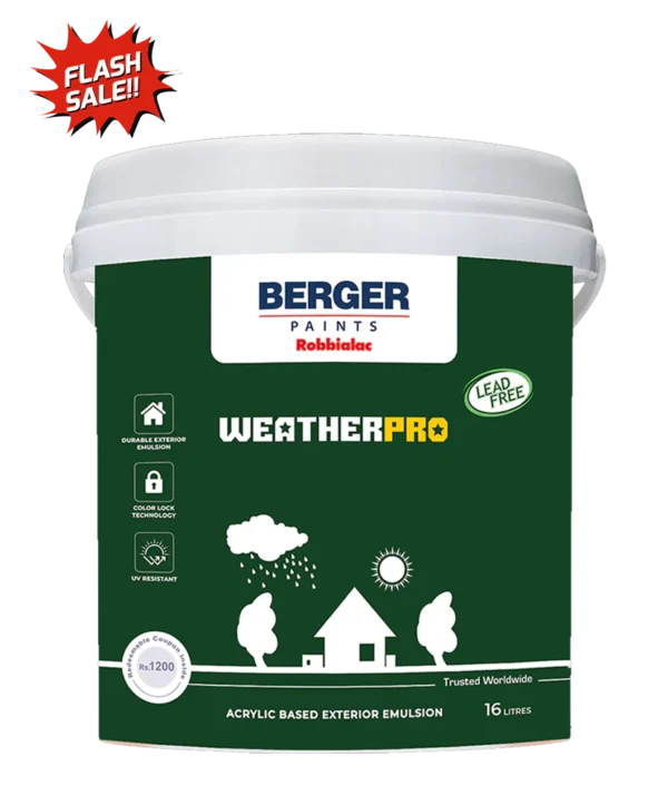 Berger Weatherpro gives a highly durable exterior finish to all types of masonry work, including pebble-dash. It is resistant to all kinds of climates and weather conditions, thus the paint lasts for many years. Product has excellent weather & scrub resistance.