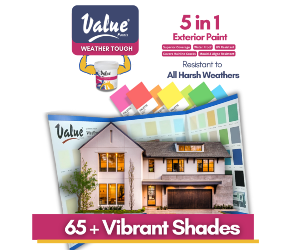 Value Weather Tough is a premium weather-resistant emulsion, designed to provide exceptional protection for your building. Offering five key benefits, this paint ensures long-lasting durability and a superior finish for all types of exterior surfaces.